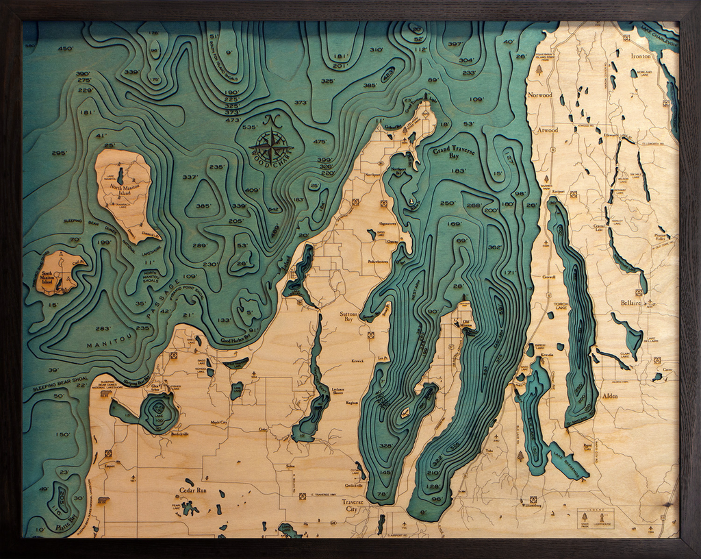 Lake Michigan Wood Carved Topographic Depth Chart Map